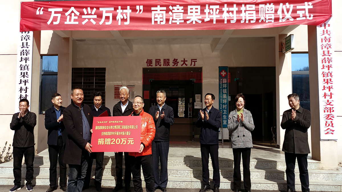 在捐贈儀式上,為了進一步落實市委統(tǒng)戰(zhàn)部、市工商聯(lián)、市鄉(xiāng)村振興局聯(lián)合發(fā)出的《關于建立村企結對幫扶機制推進“萬企興萬村”行動的通知》精神,公司李總代表博亞公司和湖南商會向果坪村現(xiàn)場捐資20萬元,助力該村產(chǎn)業(yè)振興和“美麗鄉(xiāng)村”建設。