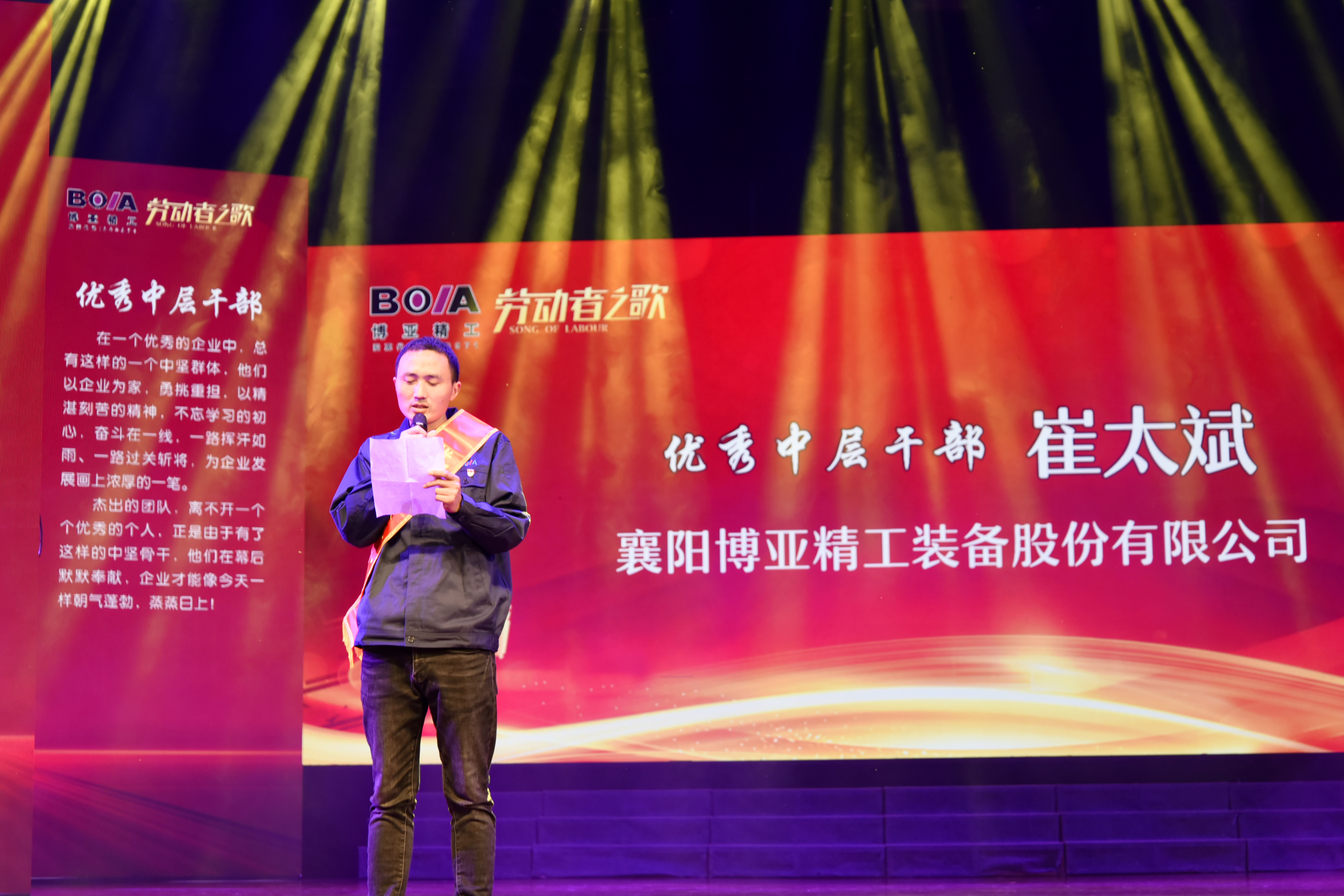 用汗水書寫歷史,用勞動奏響贊歌。2023年4月27日下午,經(jīng)市委市政府批準,在市經(jīng)信局指導(dǎo)下,由公司冠名贊助舉辦的第五屆“博亞杯”勞動者之歌暨襄陽工業(yè)精神文化展演活動,在襄陽劇院隆重舉行。襄陽市政府黨組成員張方晶,市人大常委會副主任王紹玲,市政府副秘書長潘峰,市委組織部、市委宣傳部、市委統(tǒng)戰(zhàn)部、市委人才辦、市經(jīng)信局、市人社局、市科技局、市總工會、市工商聯(lián)、市文明辦、襄陽日報社、襄陽電視臺、市中小企業(yè)發(fā)展服務(wù)中心等市直有關(guān)部門和相關(guān)單位的領(lǐng)導(dǎo),襄陽市企聯(lián)、市各商協(xié)會和百強企業(yè)代表及嘉賓蒞臨出席活動。公司董事、財務(wù)總監(jiān)康曉莉出席活動并上臺致辭。